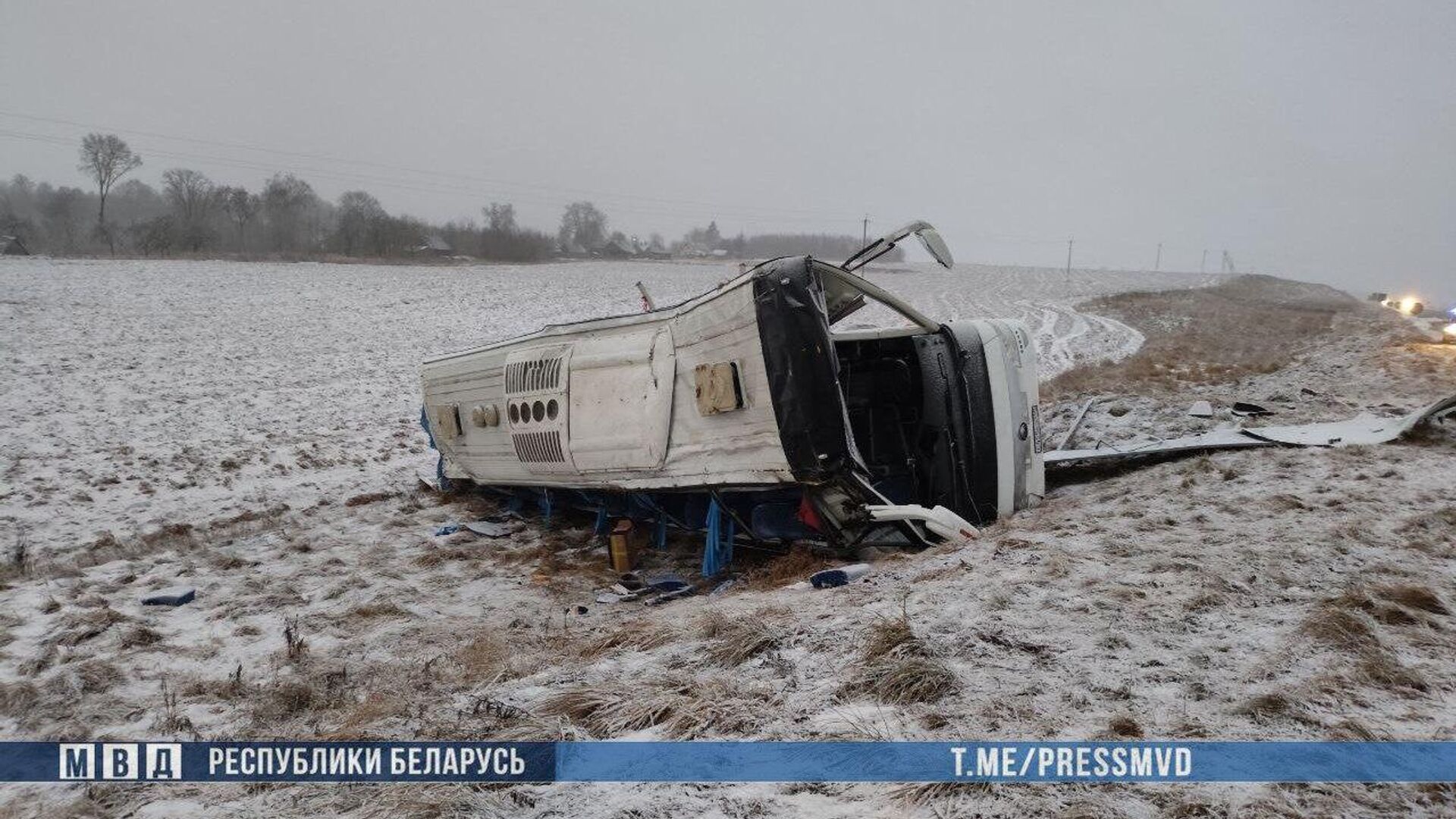 ДТП произошло в ночь на субботу на трассе М-1 ― международный автобус «Брест ― Москва» съехал в кювет и опрокинулся, погибла одна из пассажирок.